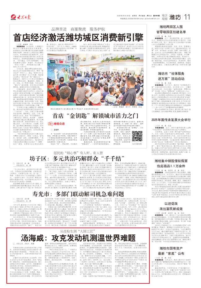 依托這些精準的測量數據,濰柴發動機性能實現了持續優化。湯海威牽頭的《內燃機高溫運動件動態測量技術研究及應用》項目,榮獲中國機械工業科技進步一等獎。這項被中國內燃機學會評定為“國際先進水平”的技術,每年為濰柴節約費用3200余萬元。