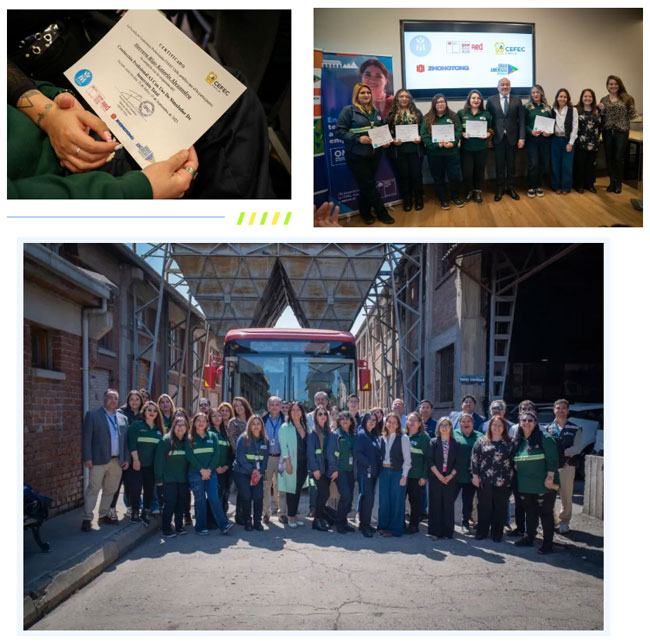 11月14日,由中通客車贊助的智利女駕駛員培訓計劃證書頒發儀式隆重舉行,智利交通部副部長豪爾赫?達扎、大都會公共交通主管保拉?塔皮亞共同見證這一重要時刻。這是中通客車主動將企業發展融入當地社會進步進程的有力展現,更是深化國際化交流合作、助力“一帶一路”民心相通的生動實踐。